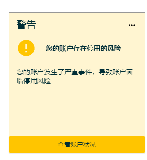該警告明確提出,賣家的賬號(hào)發(fā)生了嚴(yán)重事件,造成 賬號(hào)面臨著停止使用風(fēng)險(xiǎn)。